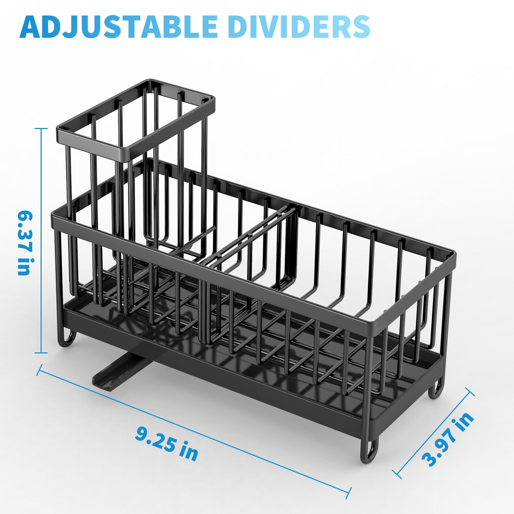 - 【REASONABLE DIVIDER DESIGN】 The sponge holder for kitchen sink ergonomic divider design allows it to have 3 separate storage spaces, Different items are placed in different areas. Make the most of every inch of space and make your kitchen look cleaner.