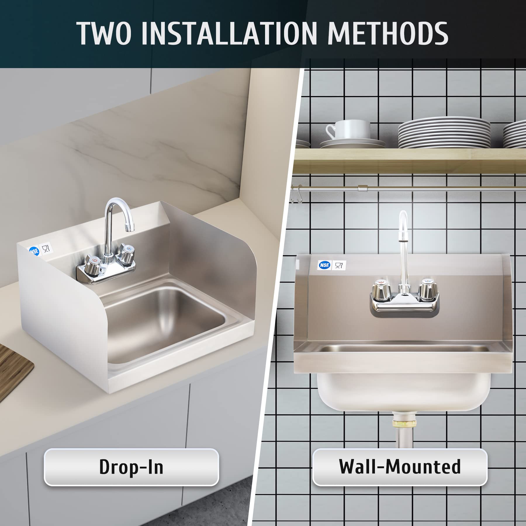 WILPREP Commercial Stainless Steel Sink for Hand Washing, NSF Commercial Utility Sink with Faucet and Side Splash, Wall Mount Kitchen for Restaurant Bar RV Bathroom Laundry Room (17 x 15 Inches)